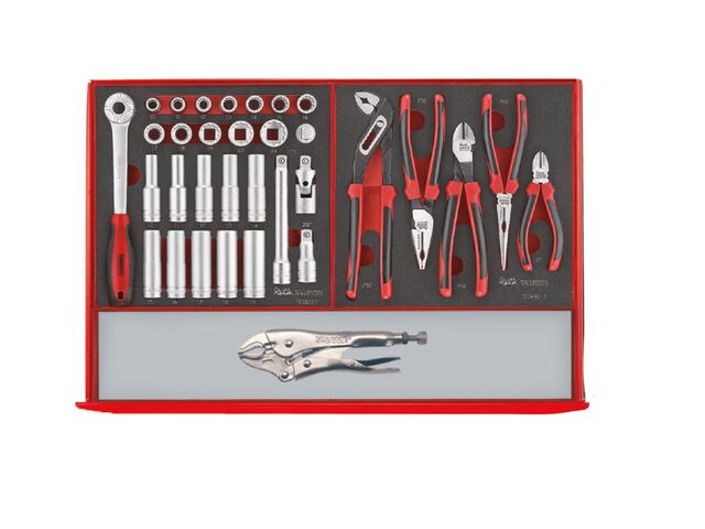 Ce set Mega Master FOAM Tools se compose d'un ensemble d'outils organisés dans le système unique de Teng Tools, le tout rangé dans une servante large avec 6 tiroirs.