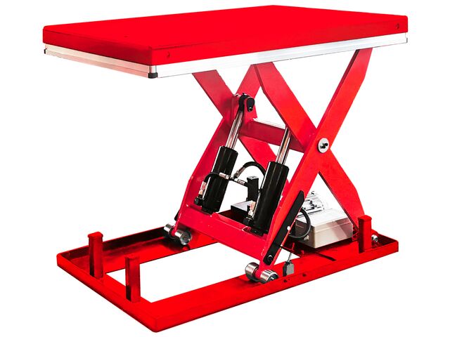 Table élévatrice à ciseaux électro-hydraulique, hauteur maximale 1020 mm, capacité 3000 kg.