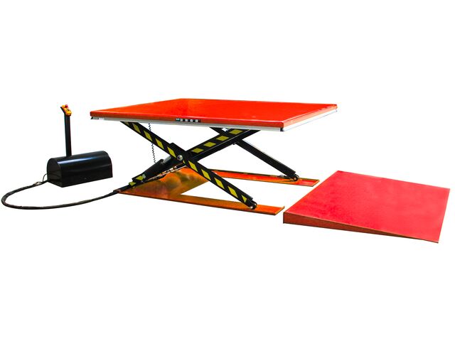 Table élévatrice à ciseaux électro-hydraulique, hauteur maximale 2050 mm, capacité 4000 kg, surface de charge 1200 x 1700 mm.