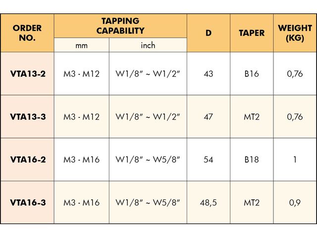 Porte-tarauds universel avec raccord CM2 pour tarauds machine de M3 à M16.