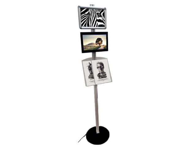 Totem Video sur pied Ecran 13" + Cadre A4 + Etagère H182cm