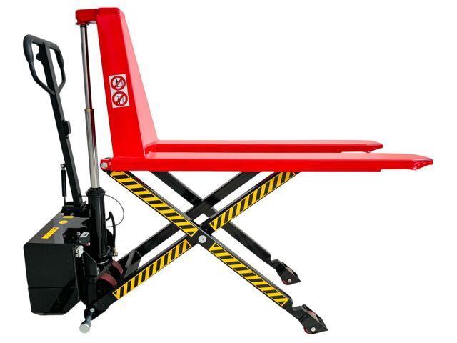 Transpalette à levage haut 1500 kg avec élévateur électrique et plage de levage de 800 mm.