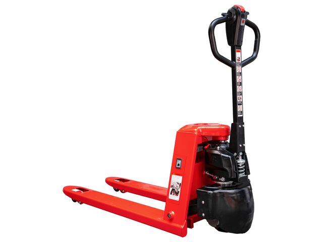 Transpalette entièrement électrique, compact et très maniable, conçu pour les opérations de manutention quotidiennes en entrepôts, ateliers, commerces et zones logistiques.